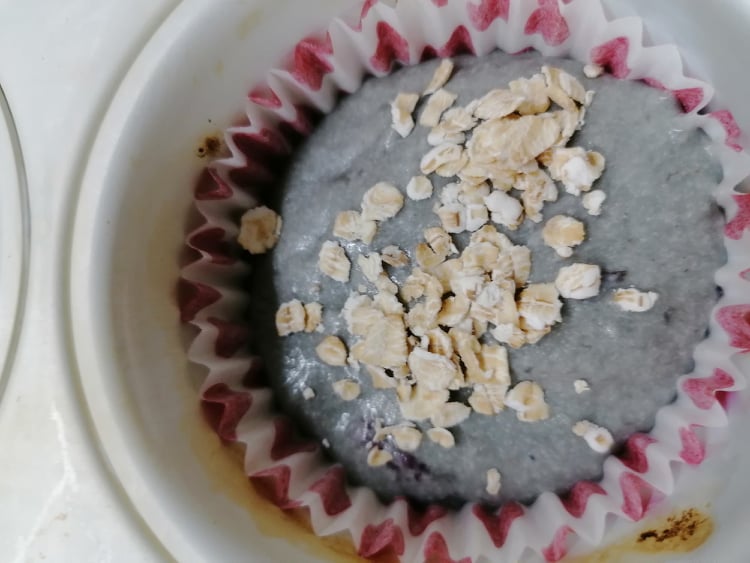 Допълних с 2 сл кокосово масло, един жълтък от свободни кокошки и 3 сл с връх брашно. Получи се гъста, но все пак течна смес.