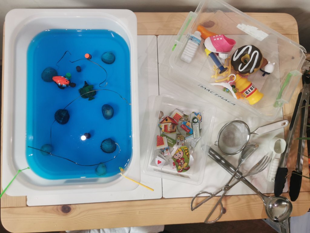 - Обитатели на водата – миди, камъни, играчки рибки