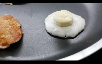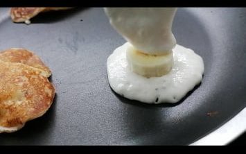 От тук има няколко варианта, с които може да експериментирате. Може да решите да потопите банановата шайба в сместа за палачинки. След като е добре оваляна да я сложите в сухия тиган и да изпечете до готовност.