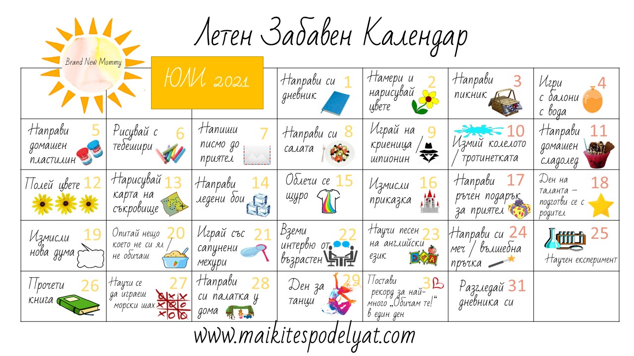 Време е да се отдадем на заслужена почивка, игри и извънкласни забавления. И понеже освен онлайн, ученето се случва и чрез игри, ти подготвихме страхотен календар с активности за деца!
