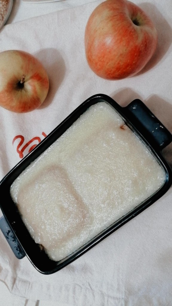 Млякото се топли и е време да добавим към него плодовете. Може да добавите тиква, круши или банан към ябълките и да ги оставите да се сварят в млякото. Когато плодовете са достатъчно меки пасирам до гладка хомогенна смес.