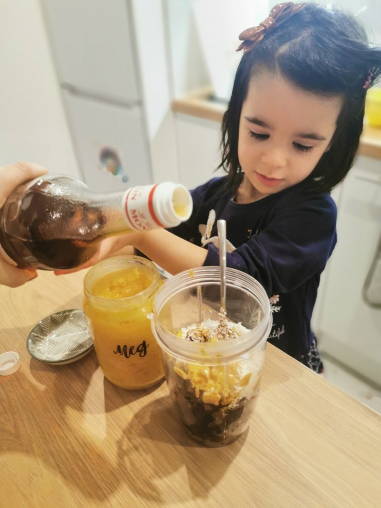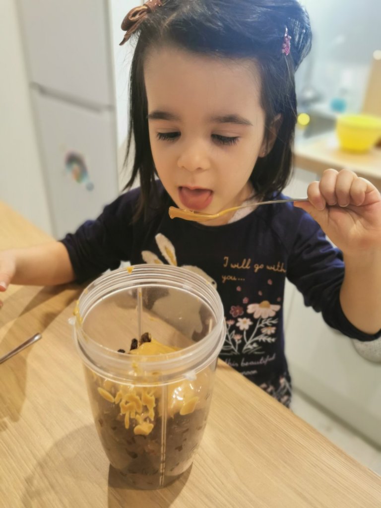 Задължително, винаги когато ще приготвям нещо с фурми или стафиди, ги накисвам от предходната вечер. По този начин те омекват и след това са много лесни за блендиране или пасиране. Старая се да купувам фурми без костилка, за да не ми се налага още една стъпка в подготовката, а имено – отстраняването им. Не че е трудно – костилките са големи и се вадят лесно, но като майка, винаги гледам да спестя някоя и друга ценна минутка 🙂