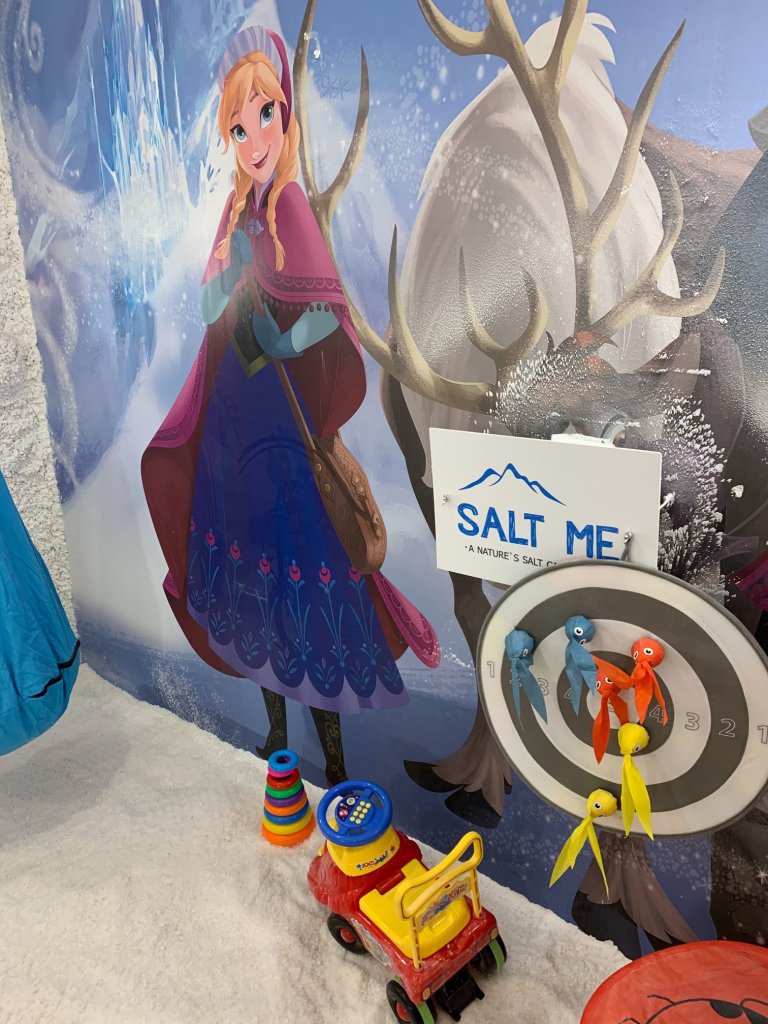 Моят чек лист ни отведе до Salt Me – стаите им се намират в големи столични молове, което решава и проблема с паркирането, а има къде да се разходим ако случайно подраним дори в дъждовните и студени дни. Понеже имат повече от една локация картата ми за посещения важи на всички адреси и може да разнообразяваме посещенията.